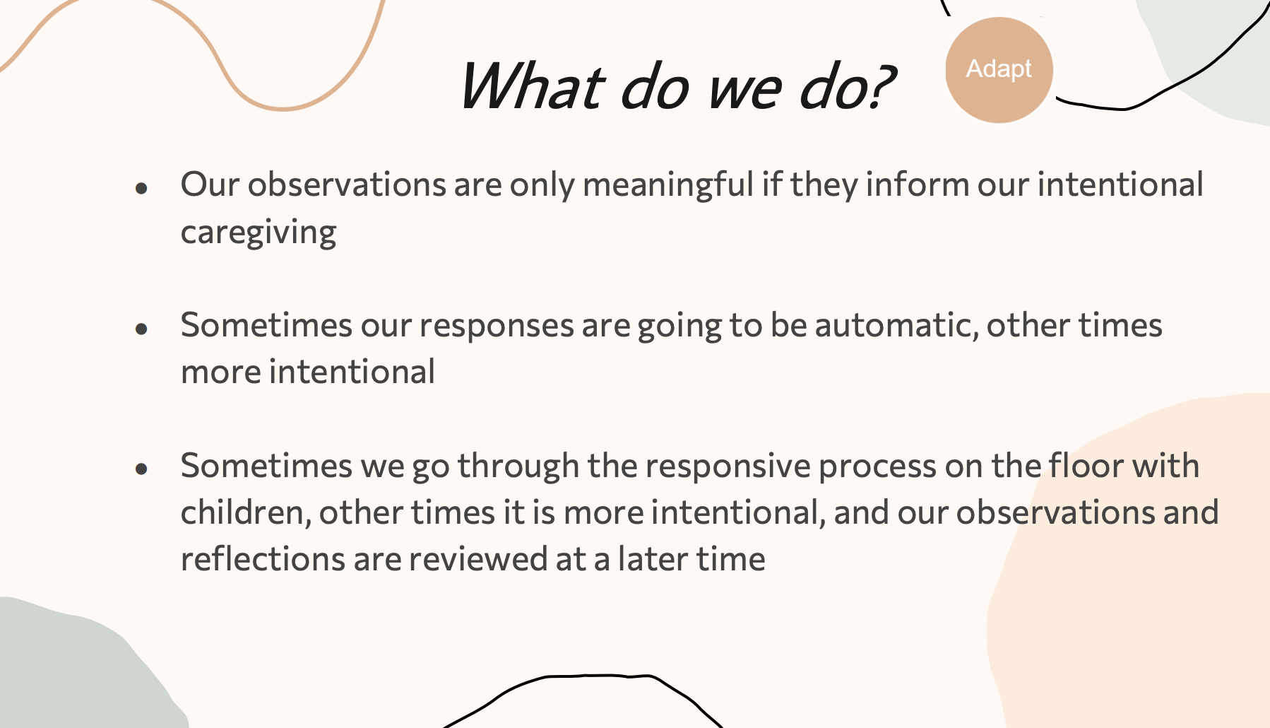 Beginning now, slow down and check your writing before posting and rewrite any aspect that doesn’t make learning visible. “They had a great time outside splashing in puddles” isn’t objective, instead you can say “The whole class went out to the playground. While splashing in rain puddles, Lucy said “My boots keep me dry and they make the water have waves when I stomp” We are often trying to make our posts be entertaining or funny but that approach takes away from the actual depth of what is happening and instead of making learning visible it’s diminishing the work we are doing as educators and it’s impact on the children and families that we are in our community with.